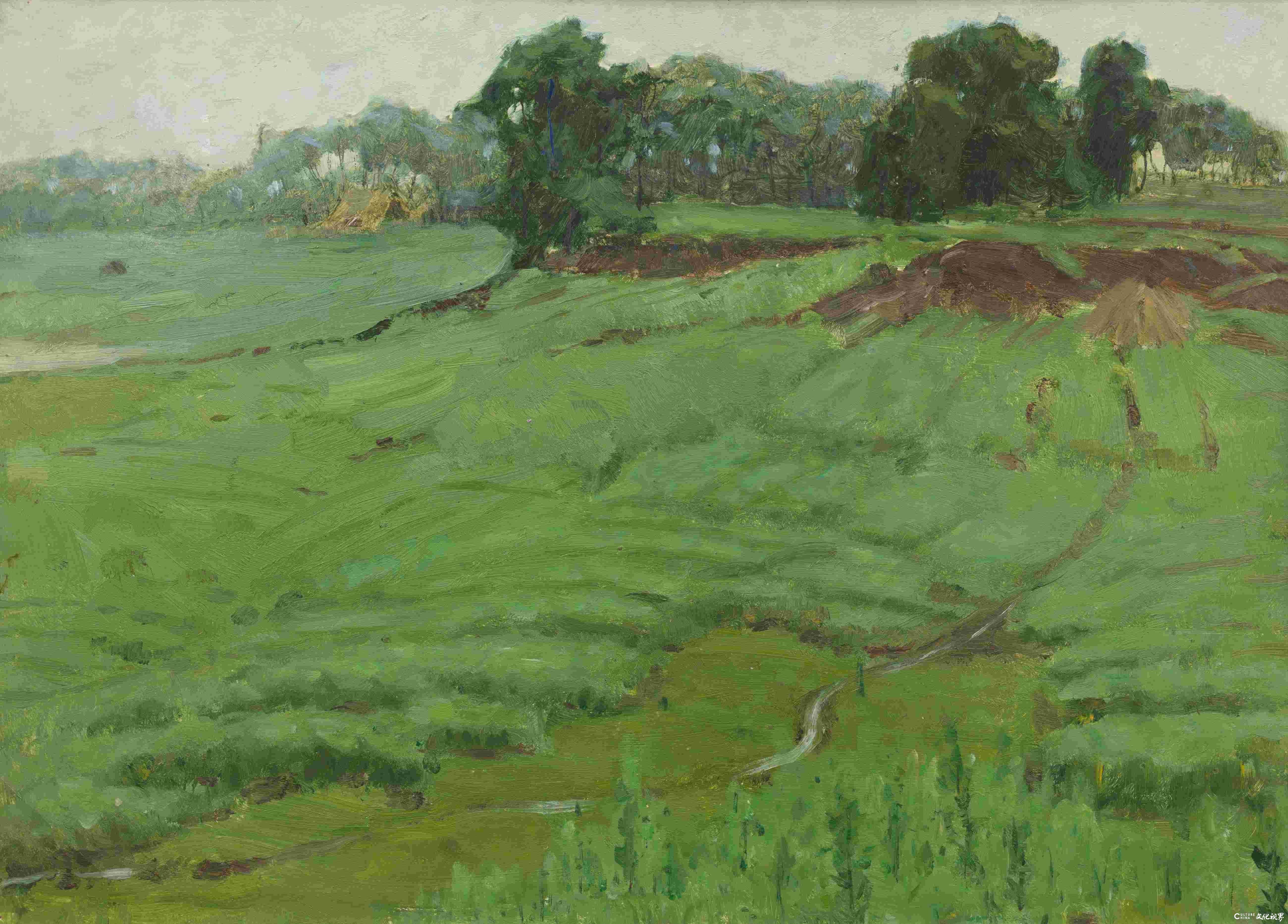 绿色的坡 15.5cmX38cm 1980 纸本油彩