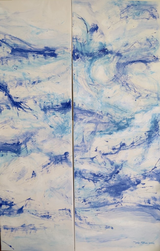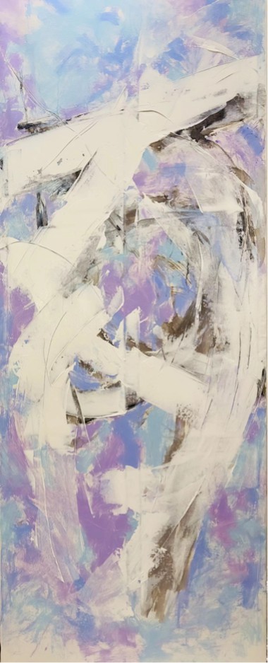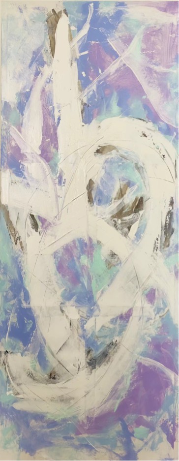 听觉的视觉化转译构成了徐适艺术创作最核心的方法论。在《自然·音乐系列》中,徐适完成了一种近乎神秘的感官转换——将流动的时间艺术凝固为静态的空间艺术。这种转换是通过色彩与形态的精心编排,创造出的视觉的“节奏”与“旋律”。徐适画面中那些宽面线与色块的交替出现,恰如音乐中的强拍与弱拍;色彩的冷暖变化与明暗对比,则对应着音调的高低起伏与音量的大小变化,在这种转译过程中,艺术家并非被动记录听觉体验,而是主动建构出一种“联觉美学”,使观者在静默的画布前“听”到色彩的“声音”,“看”到旋律的“形状”。