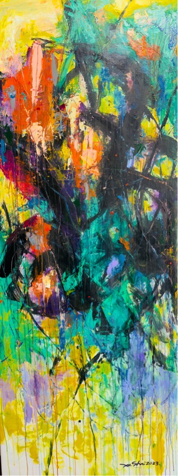 《有序与无序》系列无疑是徐适绘画艺术中最具当代意识与批判精神的创作。他将工业文明的听觉体验转化为视觉形式。那些“异形”和错落的画面构成,实则是现代性体验的绝佳隐喻——在技术理性试图将一切纳入标准化、秩序化的同时,生命本能却在不断突破这些人为框架,创造着不可预测的可能。徐适敏锐地捕捉到这种根本性的时代张力,在他的画面中,机械般精确的线条与爆发性的色彩泼溅相互渗透,形成一种动态平衡,这暗示了一种更为成熟的现代性态度——既不盲目崇拜技术理性,也不理想化地逃避现代文明,而是在承认矛盾的前提下寻找更高层次的综合。徐适通过《有序与无序》系列,将抽象艺术从纯粹形式探索提升为社会心理的视觉诊断,赋予了这一艺术类型在中国语境中难得的现实相关性。