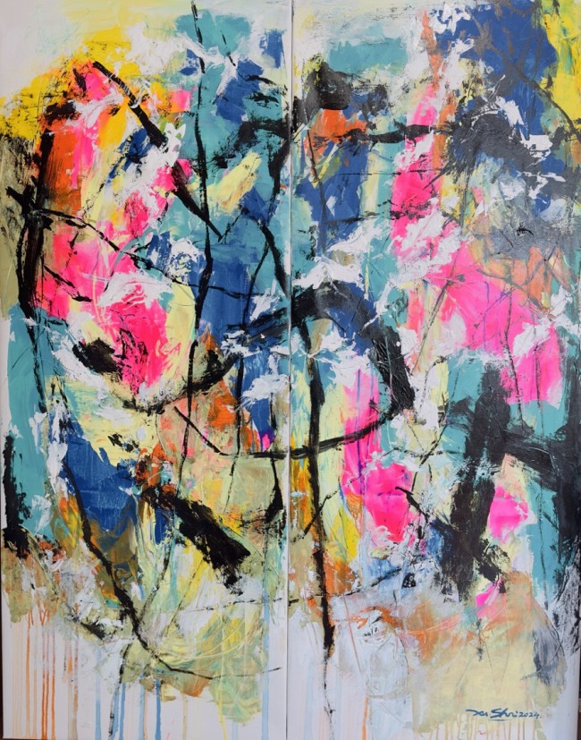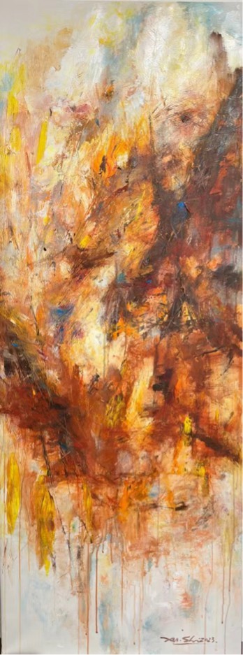 在当代艺术纷繁复杂的语境中,徐适的绘画实践为观者提供了一种罕见的跨感官审美体验。徐适的绘画创作以其独特的“听觉-视觉”转译机制,为我们打开了一扇感知世界的全新窗口。这位自1985年起便以听觉进行绘画创作的艺术家,不仅挑战了传统绘画创作的感官边界,更在视觉秩序的解构与建构中,完成了一场静默而深刻的艺术革命。他的三个系列作品——《自然·音乐系列》、《字意系列》、《有序与无序》不仅构成了一个完整的艺术探索体系,更在抽象艺术的疆域中,开辟出一条融合感官体验、文化记忆与时代精神的独特路径,使绘画这一传统视觉艺术形式,获得了全新的感知维度和表现力度。