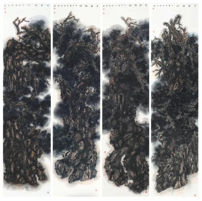 长风 200cm×50cm×4 纸本设色2016年