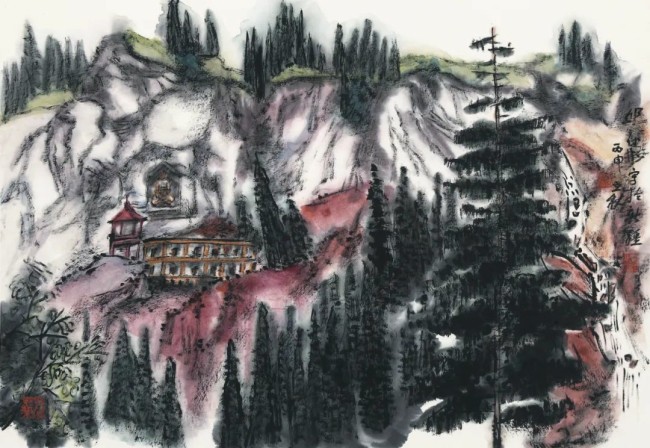从海会寺眺五老峰 90cm×60cm 纸本设色2022年