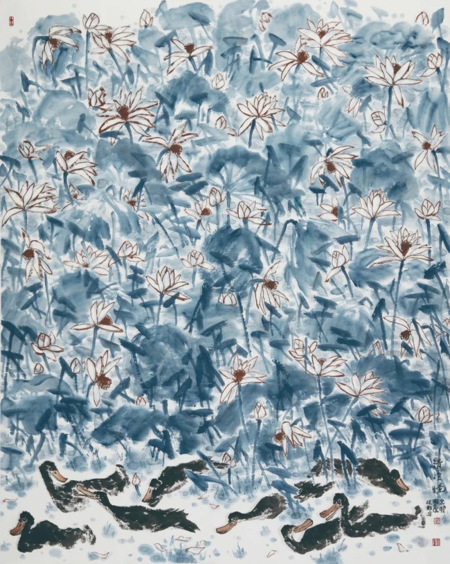闲庐邱健彬书、画、印作品兼收并蓄,难能可贵。近十年来接连有国画、书法、篆刻作品多次入选全国性大展,获取过多种奖项。作为中青年艺术家,能注重综合修养,并获取这样的成绩确应说殊属难得。这是社会与艺术转型的混乱时刻,邱健彬执着于书画印追求,显然需要一种特别的定力。在艺术探求的颠沛行程中,他体现出难得的天份与悟性。在我看来,其绘画、书法与篆刻“三栖”的最为重要之处,在于起点高,路子正,气格脱俗,温雅内敛。