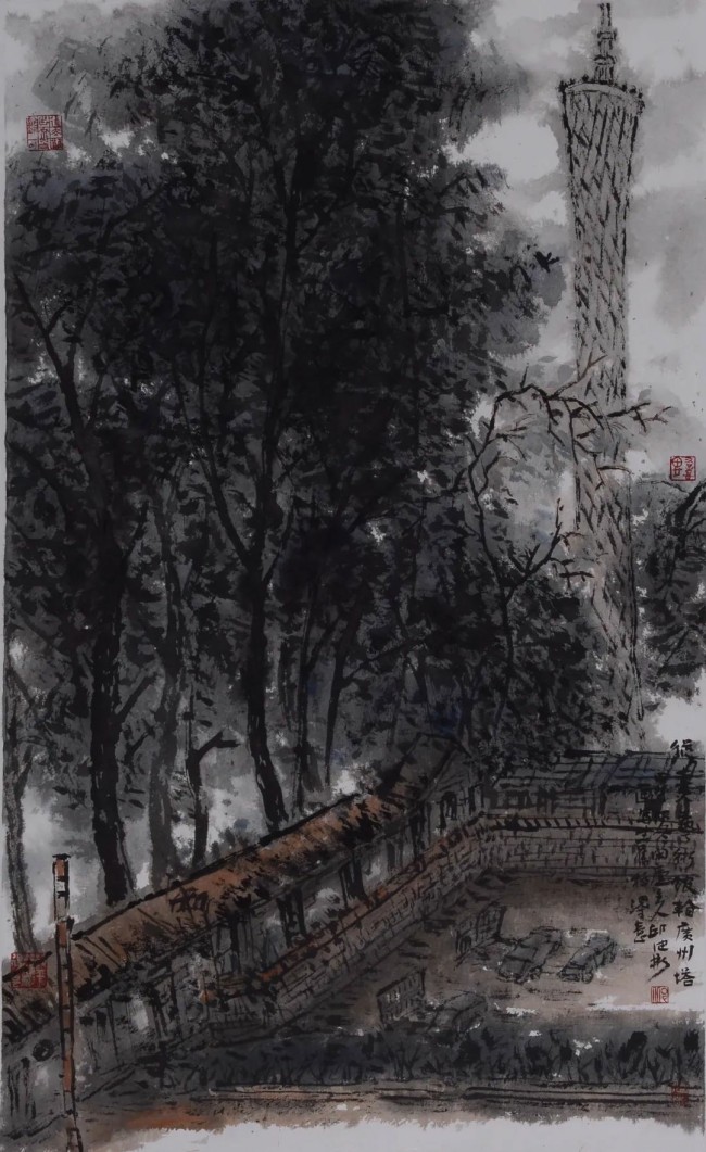 从熹艺术馆看广州塔 100cm×60cm 纸本设色2014年