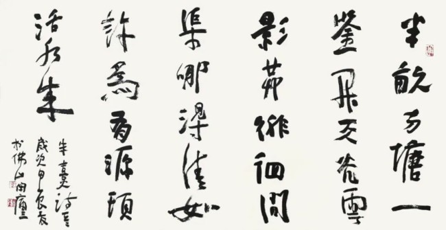好的作品,应该具备“情理之中,意料之外”的特征。情理之中,即笔墨和技法有板有眼有法度。意料之外,即作品的形式和意境与众不同,妙处横生,蕴含着非常的境界和思想。只有这种作品,才能耐人寻味,引发共鸣。