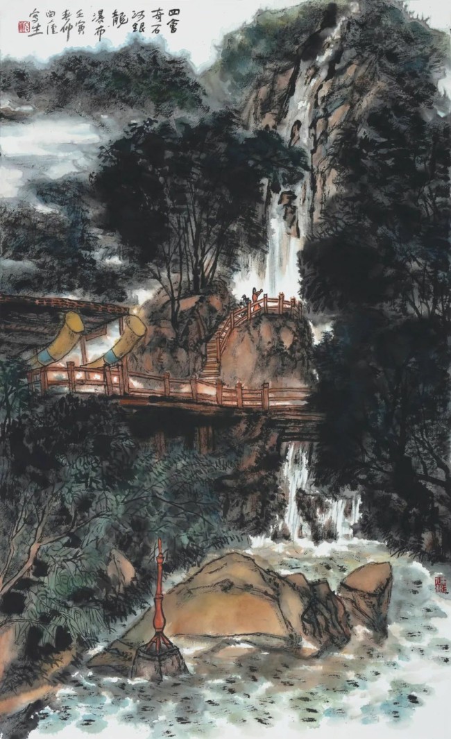 四会奇石河银龙瀑布 100cm×60cm 纸本设色2022年