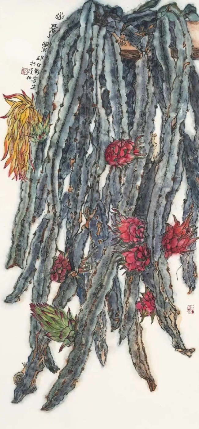 火龙果写生 110cm×50cm 纸本设色2014年