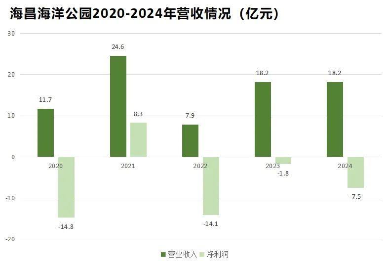 以海昌海洋公园为例,2024年旗下公园入园人次共计约1079万人,同比增长16.1%,公司全年营收18.18亿元,同比仅增长0.1%,但净亏损却从2023年的1.86亿元扩大至2024年的7.61亿元,毛利更是从2023年4.57亿元减少至2024年的4.19亿元。