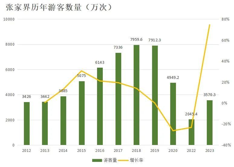 比如张家界的游客数量从2019年的近8000万人次下降至2024年的3570万人次,接待规模减少了超过一半。(这里的张家界旗下景区主要是指宝峰湖景区和大庸古城,而人流量不减反增的张家界国家森林公园和天门山国家森林公园,虽然赚钱,但并不属于张家界公司。)