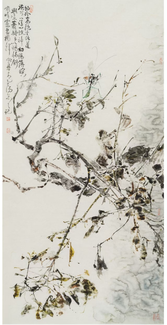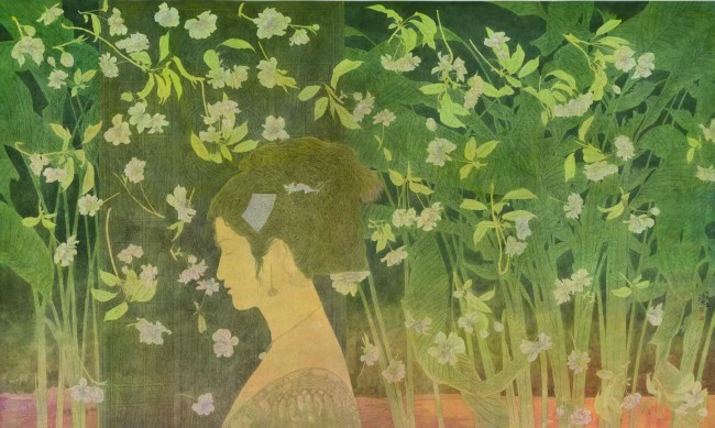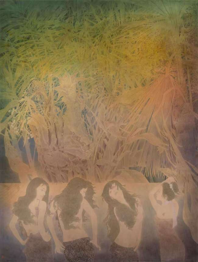 冯东东不断地在寻己思远中用自己的理解去营造一个想象中的画面世界,在这个画面世界中有着他对自然和东西方艺术的所有理解。东西方截然不同的两套系统,在他这里得到了很好的融合和平衡,并进一步深化了他的创作。冯东东的创作很像植物生长,在不同的阶段会自然分叉,逐渐丰茂起来。他很早在工笔人物里摸索出一套自己作画的方式、方法,包括材料和语言,也包括有关将体验转换成画面的表达能力。接着,拓宽这套方法的覆盖范围,涉及不同的题材和材料。后来这套方法延伸到花鸟和水墨系列作品。可以说,无论是绘画的形式语言,还是绘画的观念延宕,冯东东都已经成功地确立了他自己独有的、自足的一套体系。