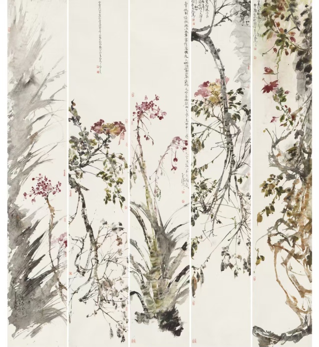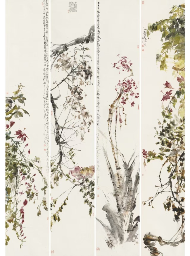 空谷嫣然 240X42X4CM 2024年 没骨,纸本
