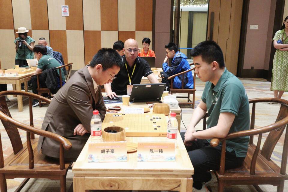 第二台的陈一纯六段与胡子豪六段上演了一场跌宕起伏的攻防大战。执白的陈一纯开局抓住对手失误建立优势,却因两步缓手被黑棋追平。双方在混战中展开激烈争夺,局面一度胶着。当棋局进行至143手时,黑棋的随手棋导致眼位不足,形势急转直下。尽管白棋也在激战中出现失误,但陈一纯凭借更清晰的思路,在第336手时锁定胜局。