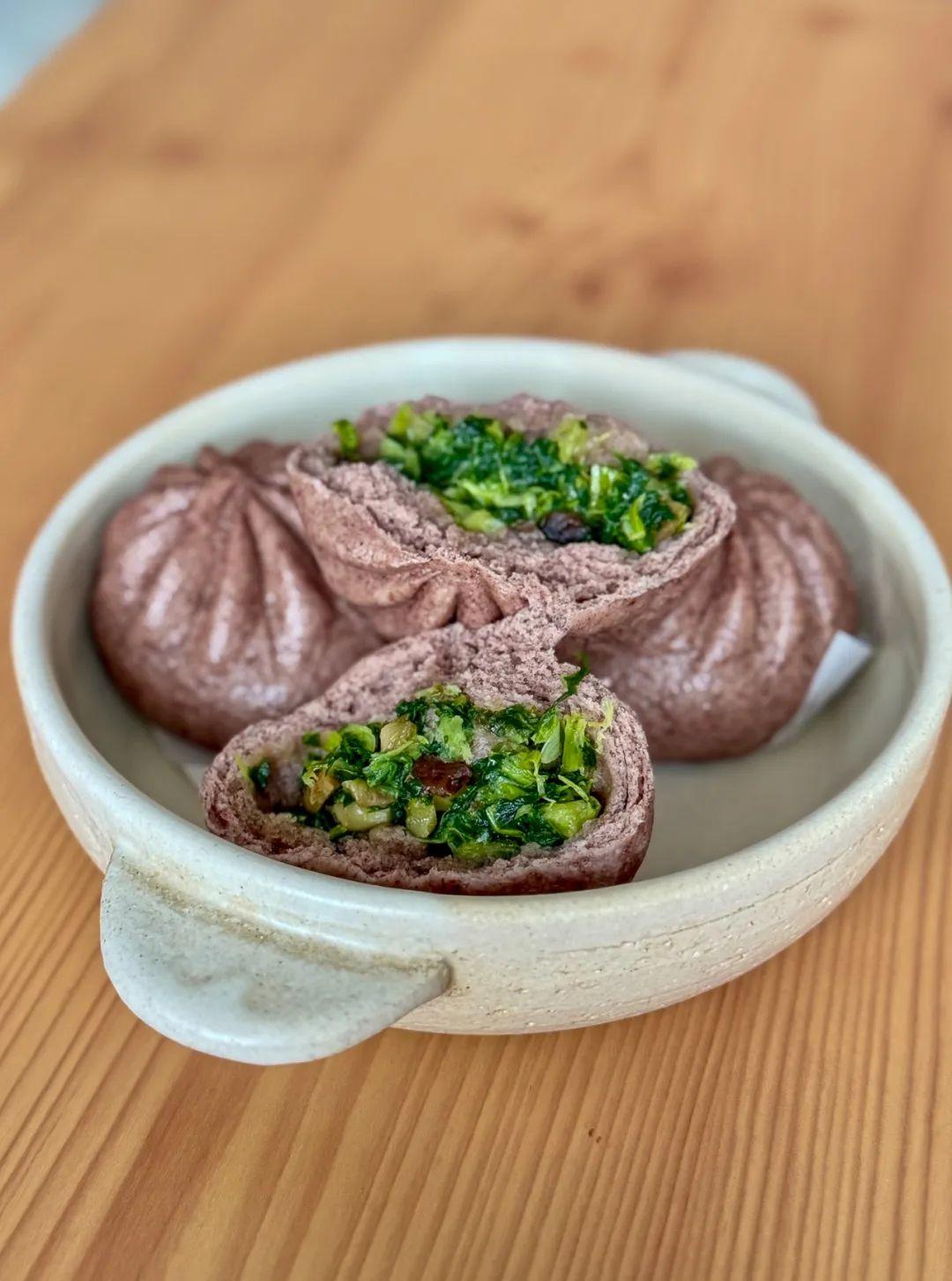 十分钟后,包子出锅。它没有普通包子扑面而来的麦香,但咬一口还是松松软软,咸中带鲜的青菜馅儿调味,是熟悉的菜包子味儿。我只吃了两个,便再无多吃的欲望——或许是因为“低GI”带来的心理作用,或许是真的有更强的饱腹感。总之,真挺好吃的。
