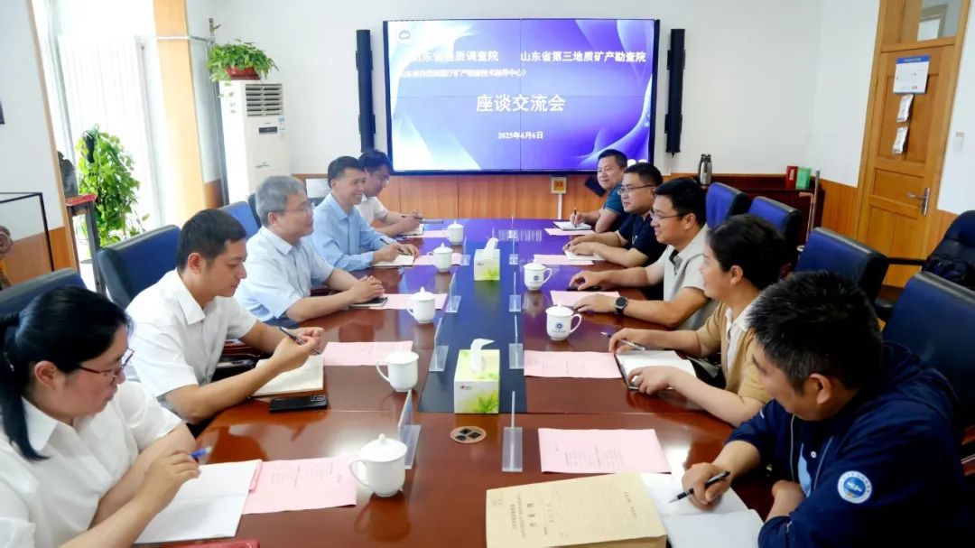 6月6日,省地矿局三队党委班子成员安茂国、魏绪峰带队赴山东省地质调查院学习交流。省地调院党委书记、院长孙斌,院党委专职副书记程鸿雁及相关部门负责人参加座谈。
