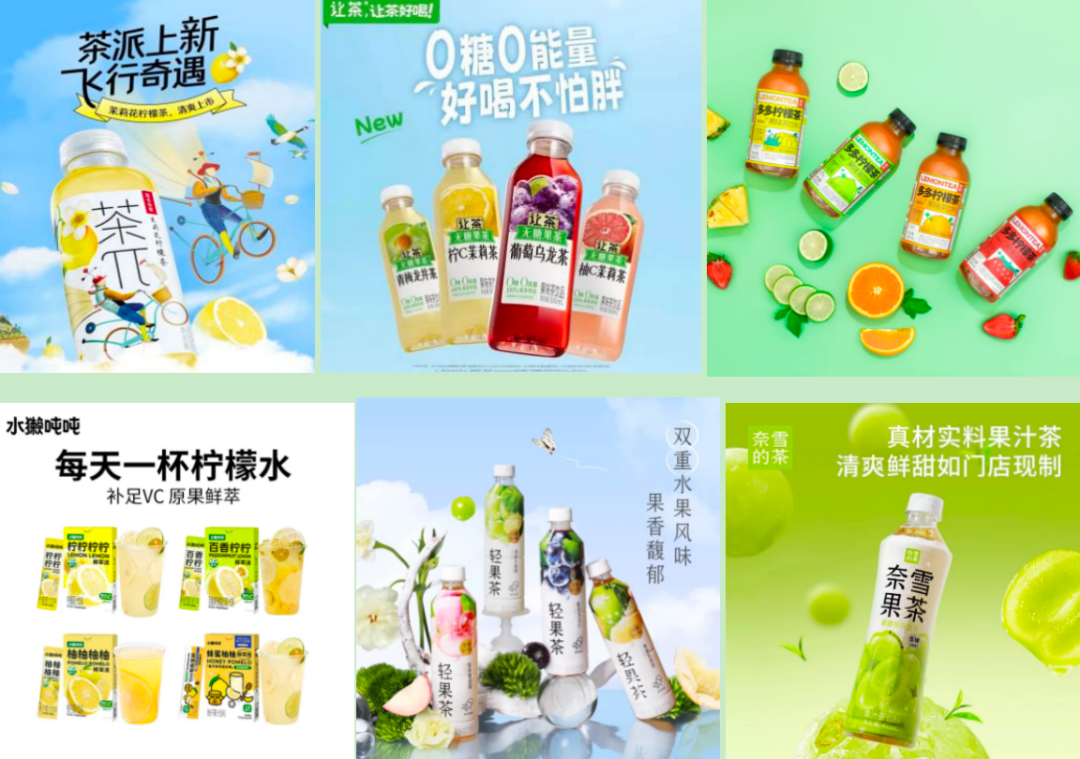现制茶饮跨界军来势汹汹,具有线下积累的品牌势能和口味研发经验优势。能够轻松将现制爆款转化为预制产品,如喜茶低糖浓果茶(50%果汁)、轻果茶、果蔬纤体瓶,奈雪果茶等。
