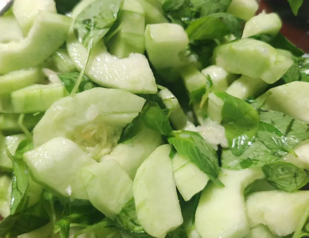 拌凉菜,老家有一种艮瓜,又称菜瓜或酥瓜,口感脆,水分多,又没有一点自带的甜酸,尤其适合和荆芥一起凉拌,用老家话说,大大的蒜,大大的醋,吃完能改日本话,大大的好。