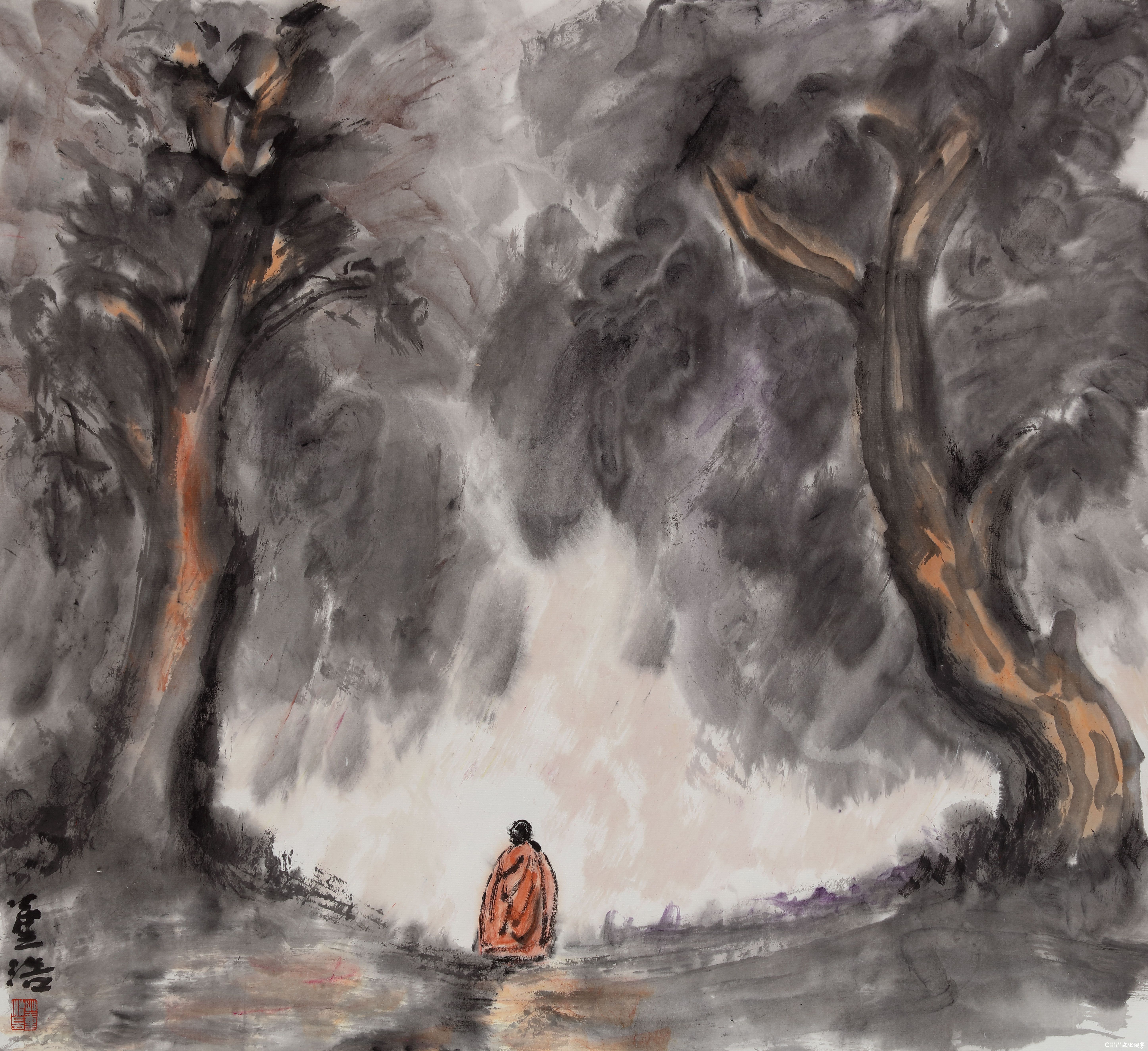 董浩的艺术实践并非偶然转向,而是源自血脉深处的文化传承。先祖董卫国奠定了家族诗书传家的根基。父亲董静山身为京城著名画家,更是直接将笔墨基因植入他的成长历程。从 5 岁开始习画,董浩在父亲的教导下,打下了扎实的传统书画童子功,传统书画的笔墨规范早已成为他潜意识中的艺术母语。