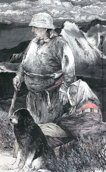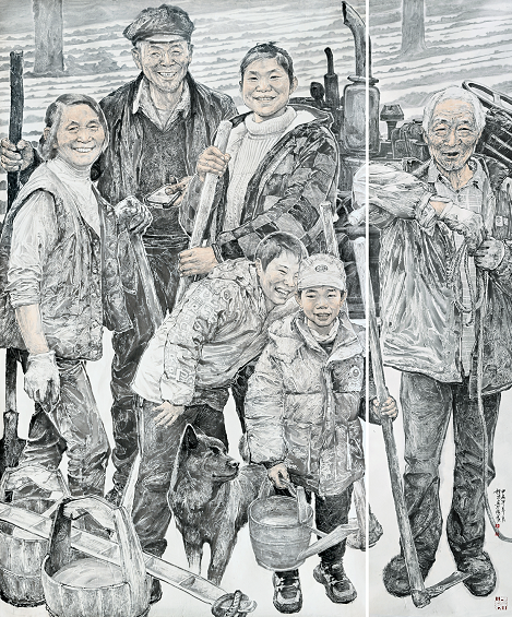 钟鸣的水墨画与工笔画艺术呈现出一种独特的双重性,既承载着传统东方美学的精神内核,又融入了当代艺术家的个体思考。他的创作实践不仅是对传统技法的延续,更是在笔墨语言与形式构成上的积极探索,展现出跨越时空的文化对话与审美重构。在水墨与工笔两种截然不同的表现体系中,钟鸣以截然不同的艺术语言,构建起一个兼具传统韵味与现代意识的视觉世界。