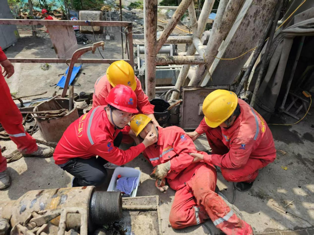 为有效应对夏季高温天气,提高职工对中暑突发事件的应急处置能力,保障职工生命健康安全,6月27日,省地矿局鲁南院水工环地质中心联合地质钻探中心在微山岛韩庄地热田地热资源调查评价项目现场开展了高温中暑应急演练。