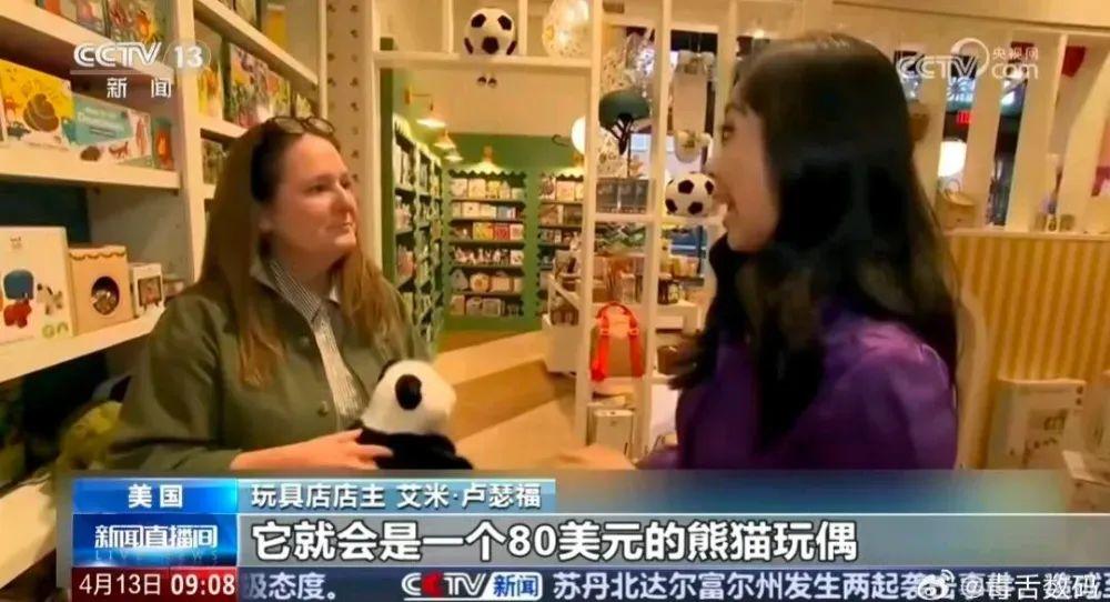在美国原本好卖的中国熊猫玩偶,价格从32美元飙升至80美元,一位玩具店主就诉苦:“谁会花80美元买一只熊猫玩偶?孩子们会哭,家长们会愤怒,而我的店铺可能撑不过这个圣诞节。”