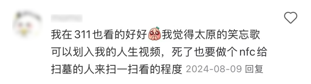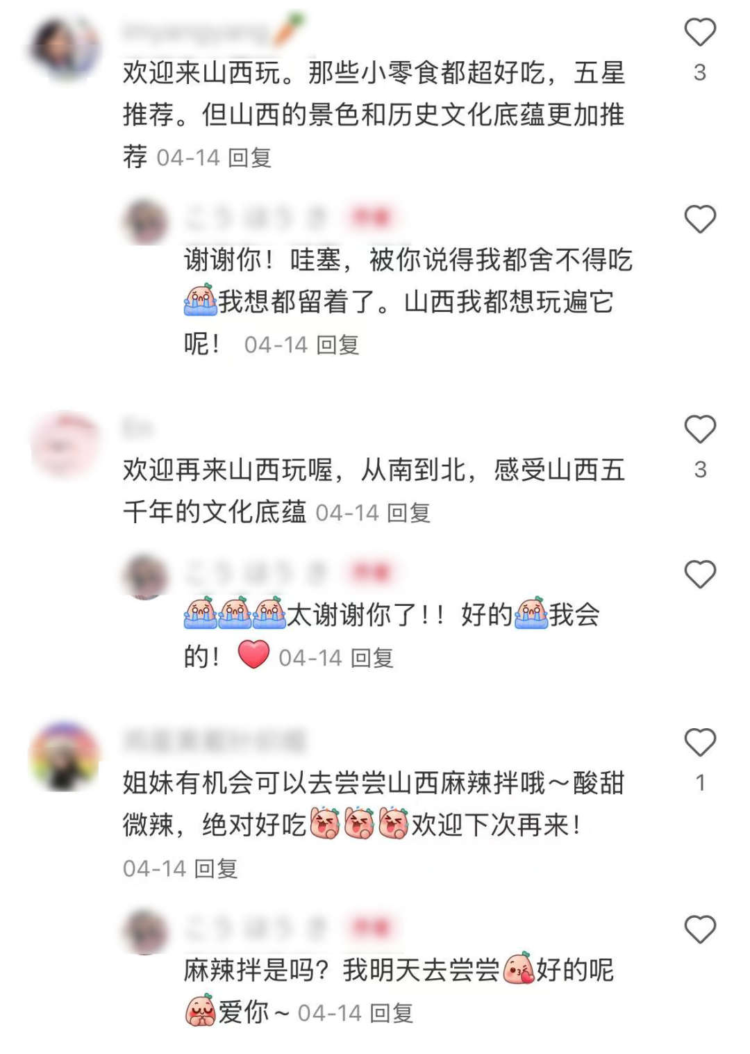 当歌迷们在社交平台上晒出这些美好的时候,还会有很多太原本地人在底下纷纷欢迎歌迷朋友们下次再来,自发推荐家乡的历史文化和美食。不是我说,难道温柔和教养是刻进你们山西人骨子里吗?!甩个截图给你们看看,全程无剪辑。