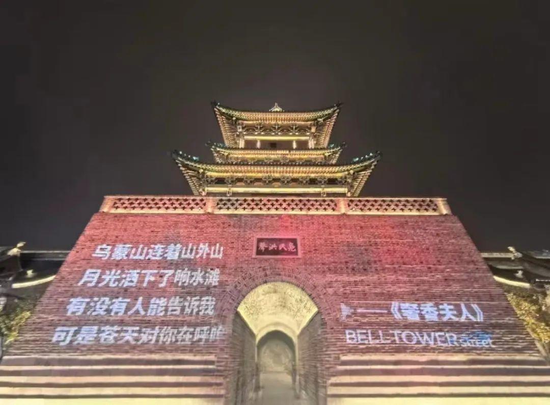 当无人机表演已经成为常态时候,太原又整起了别的活:钟楼上开始循环歌手们的歌词。