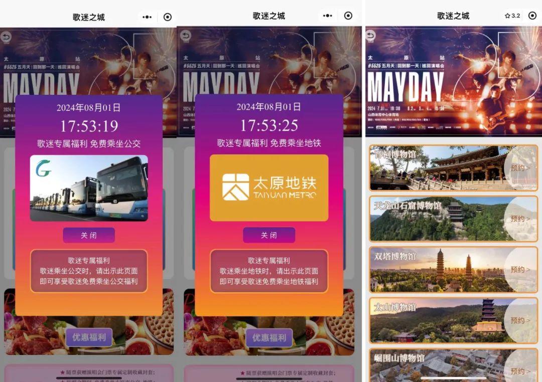 太原还推出了一系列歌迷演唱会专属福利,为此还设立了“歌迷之城”微信小程序,歌迷凭票可以免费乘坐公交地铁,免费游览晋祠、天龙山石窟博物馆等知名景点。有的餐厅菜品还可以凭票打折,吃喝玩乐一条龙服务,这谁顶得住啊!
