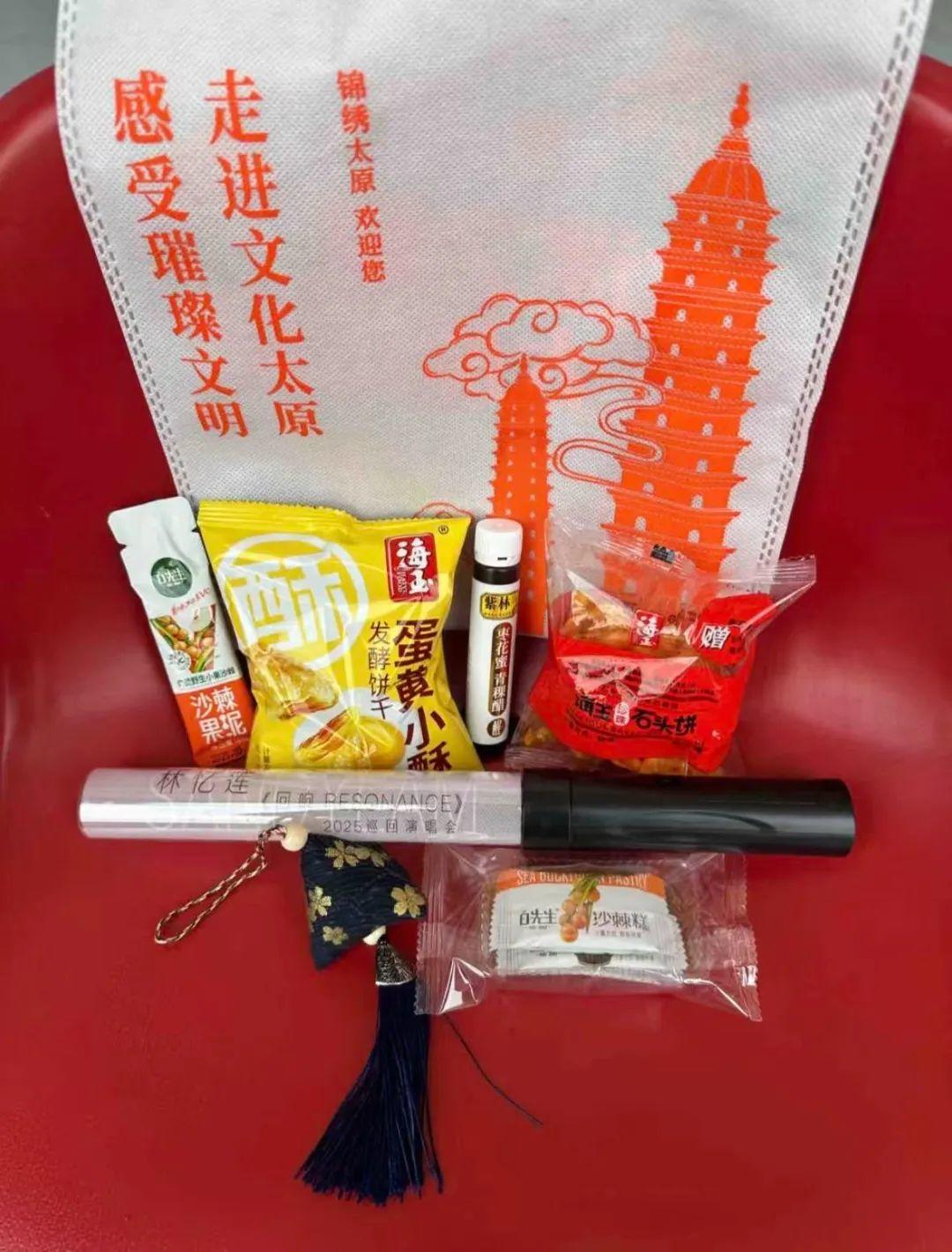 演唱会上,别的地方顶多送个小纪念品,太原反手就是特产大礼包。薯东方、石头饼、紫林醋、沁州黄……各种本地特产让人一边看一边吃,简直不要太爽。到座就有“歌迷之城,太原宠你”伴手礼袋子等着你,这哪是看演唱会,分明是被太原塞进了爱吃人的天堂好嘛!