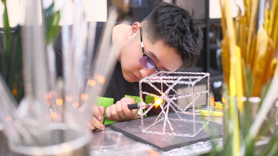孙启烨2001年出生于淄博,这里是中国琉璃的重要发源地之一,他的母亲彭青艾从事古琉璃收藏与经营多年,家中陈列着各式历代琉璃器皿。从小,孙启烨就在这些晶莹剔透的器物间穿梭,耳濡目染间,对琉璃产生了特殊的情感,也正是一场所谓的“乌龙”事件,改变了这位年轻人的艺术轨迹。