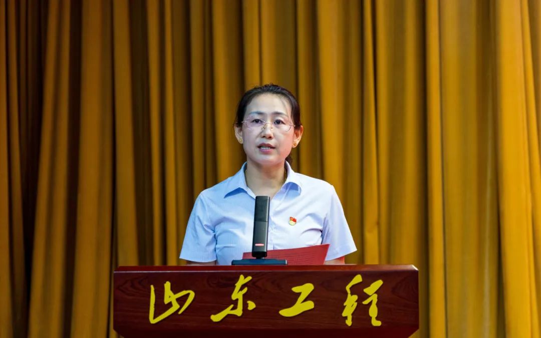 王玉珠宣读《关于山东工程职业技术大学2025年暑期“三下乡”实践团队组建情况的汇报》,学校2025年大学生志愿者暑期“三下乡”社会实践活动,以“青春为中国式现代化挺膺担当”为主题,围绕理论普及宣讲、爱国主义教育、中华文化传承、促进乡村振兴、服务基层群众、民族团结实践、沿黄社会实践、强省建设观察八个方面,共立项139支实践团队,其中校级重点团队46支,发动千余名师生,赴省内外16个地市、55个区县、28个街道乡村开展社会实践活动。