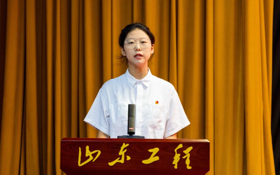 孔令娟发言,她对大学生实践锻炼的重要性以及“三下乡”的必要性进行解读,她表示山东工程青年立志走出校园小课堂、走进社会大课堂,用脚步丈量祖国大地,用眼睛发现中国精神,用耳朵倾听人民呼声,用内心感应时代脉搏,定能成为有理想、敢担当、能吃苦、肯奋斗的新时代好青年,展现出山东工程青年学子的责任担当。