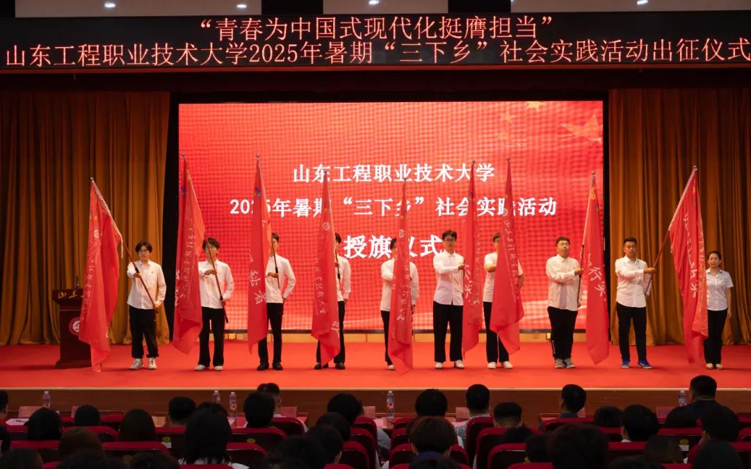 近日,山东工程职业技术大学举行“青春为中国式现代化挺膺担当”2025年暑期“三下乡”社会实践活动出征仪式。党委委员、副校长韩业文,党委委员、宣传部部长张元,党委委员、学生工作部部长徐锡林,团委书记王玉珠,各二级学院副院长、科长、团总支书记,校院暑期“三下乡”社会实践团队指导老师及实践团成员代表参加仪式。仪式由团委蔡雷停主持。
