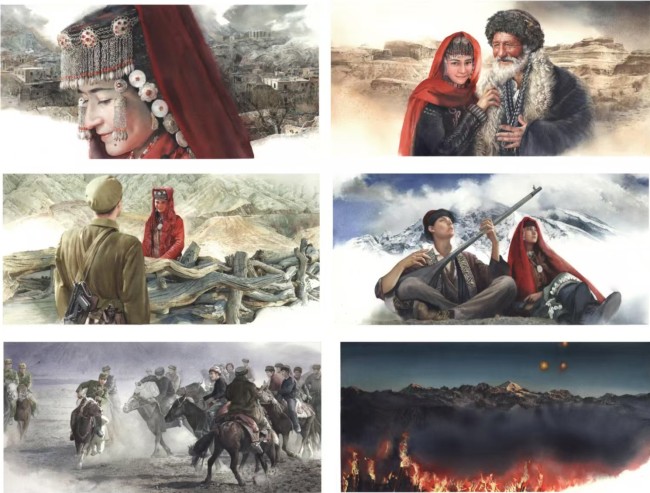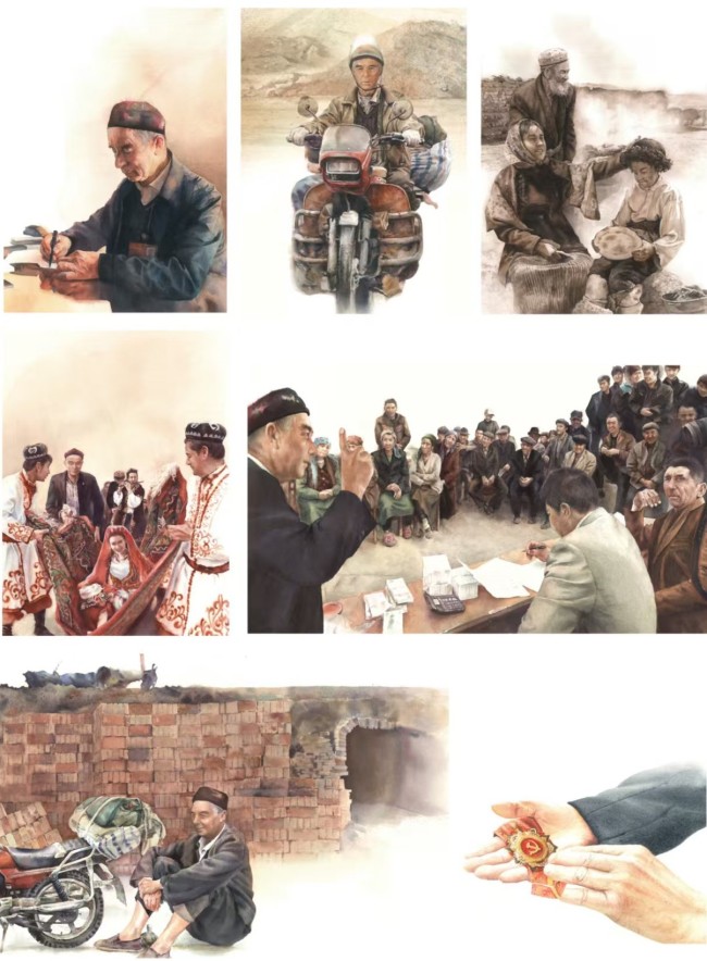 《再度出山-买买提江·吾买尔的故事》,40×28cm×24,2023年,入选第八届全国架上连环画展