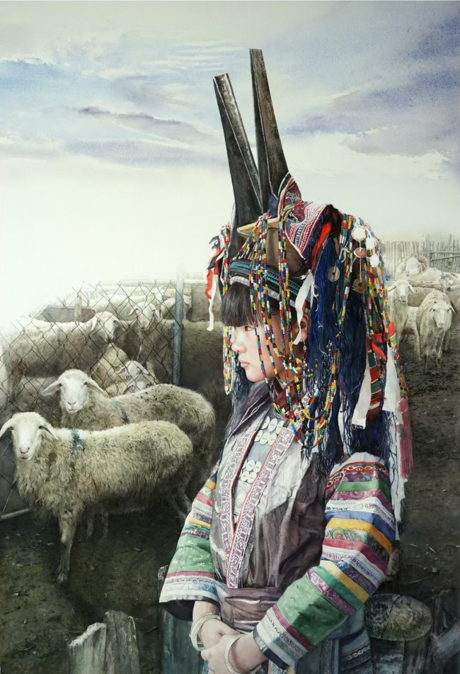 《侗族少女》,沈璐,水彩,110X70cm