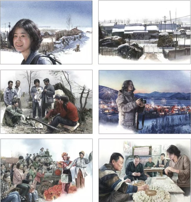 《冷菊贞和小南河村》,35×28cm×6,2021年,中国国家博物馆收藏