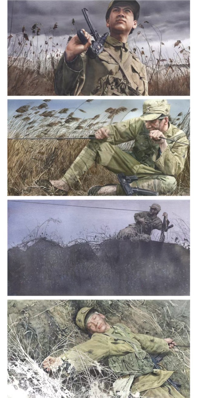 《冰山上的来客》60×30cm×8,入选第五届全国架上连环画展,国家艺术基金滚动资助作品