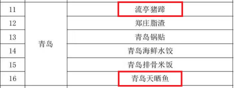 城阳区流亭猪蹄、青岛天晒鱼成功入选。