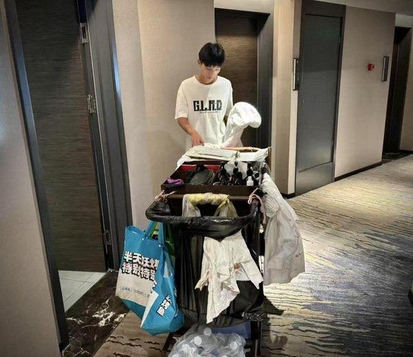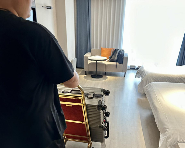 李宜飞搬运客人行李,箱子虽重却走得稳,他说“得安全送到才行”。范宗源整理清洁推车、打扫客房,每个角落都擦得干净,觉得“就像做精细活,不能马虎”。