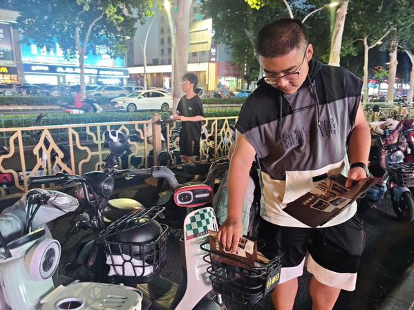 下午5点,队员们分组到周村古商城、八大局市场分发传单。有人笑着跟游客说“来淄博除了烧烤,还能玩剧本杀”,有人帮摊主递东西时顺势推介,渐渐有游客咨询。队员小吴说:“虽然没按原计划来,但能找到新办法,也挺有成就感。”