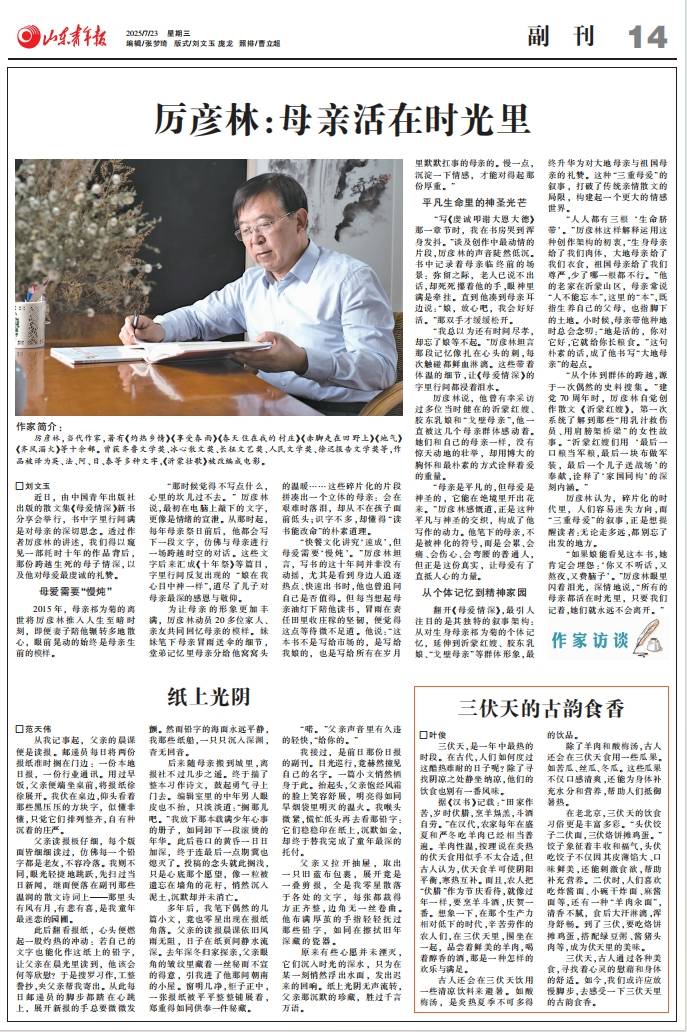 如果娘能看见这本书,她肯定会埋怨:“‘你又不听话,又熬夜,又费脑子’。” 厉彦林眼里闪着泪光,深情地说:“所有的母亲都活在时光里,只要我们记着,她们就永远不会离开。”