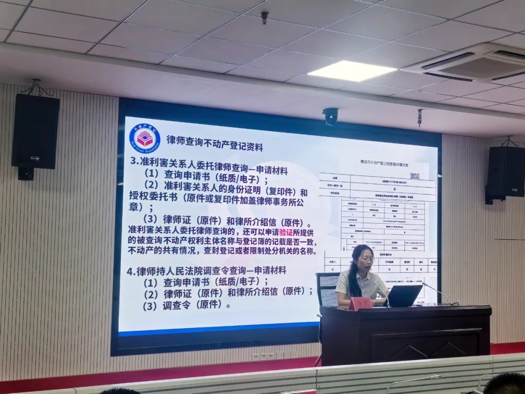 新区不动产登记中心档案查询工作人员徐凤聚焦不动产登记信息查询实务,深度解析律师查询不动产登记信息的原则、资料范围,重点讲解了律师线上查询不动产登记信息的规范流程及操作要点,明确律师依法依规调取、运用不动产登记信息的边界与责任,强化律师执业规范意识。