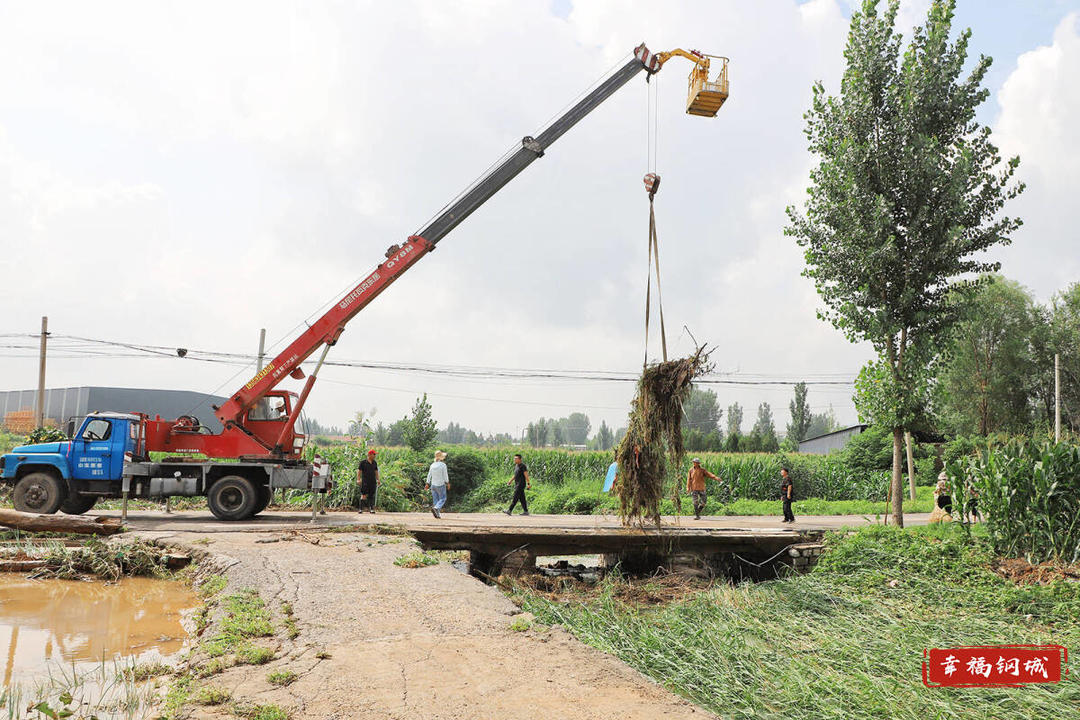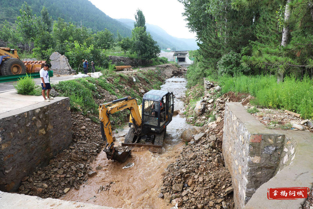 在不远处的埠东村泉水峪水库旁,挖掘机轰鸣作响,将溢洪道上的乱石逐一清理。“这里是水库排水要道,必须要尽快疏通,避免泄洪对下游造成损失。”埠东村党支部书记、村委会主任李德生第一时间调集挖掘机,采取“先通后畅”原则,仅用一上午时间就将溢洪道疏通完毕。