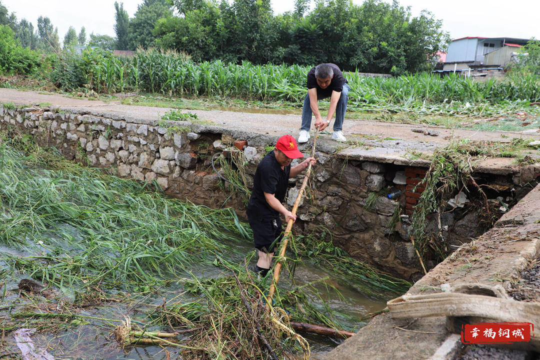 “昨晚的暴雨导致垃圾堵塞、河水改道,周边的玉米地和菜园受到了影响。”南下冶村党支部书记李训珍说,河水暴涨后,村“两委”第一时间通过微信群、大喇叭等方式通知村民,并连夜组织党员群众值守河道,在疏散群众的同时,用铁锹等工具人工打捞漂浮物,天亮后立即协调机械前来支援。