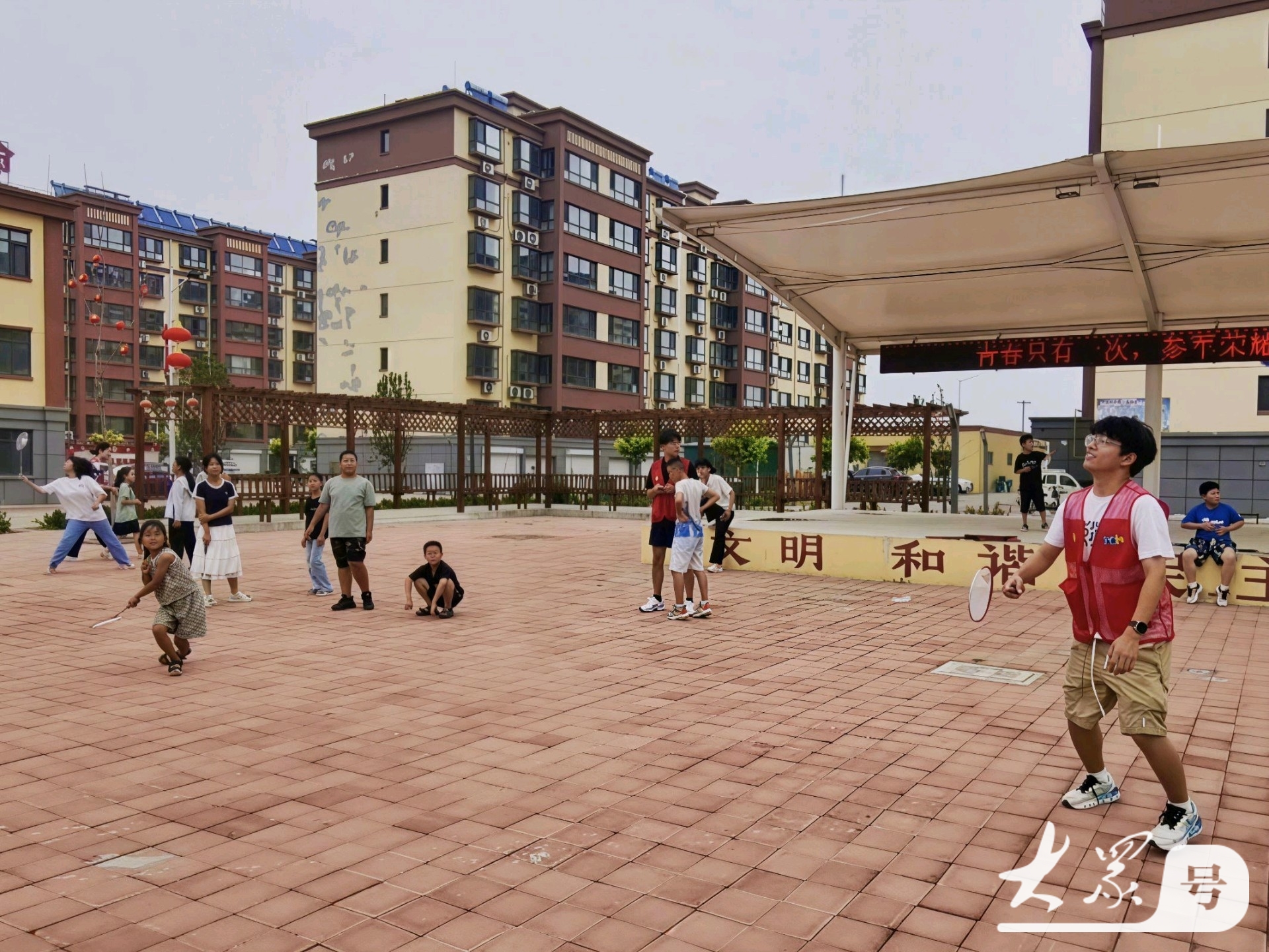 图为志愿者与小朋友打羽毛球。吴威廷 供图