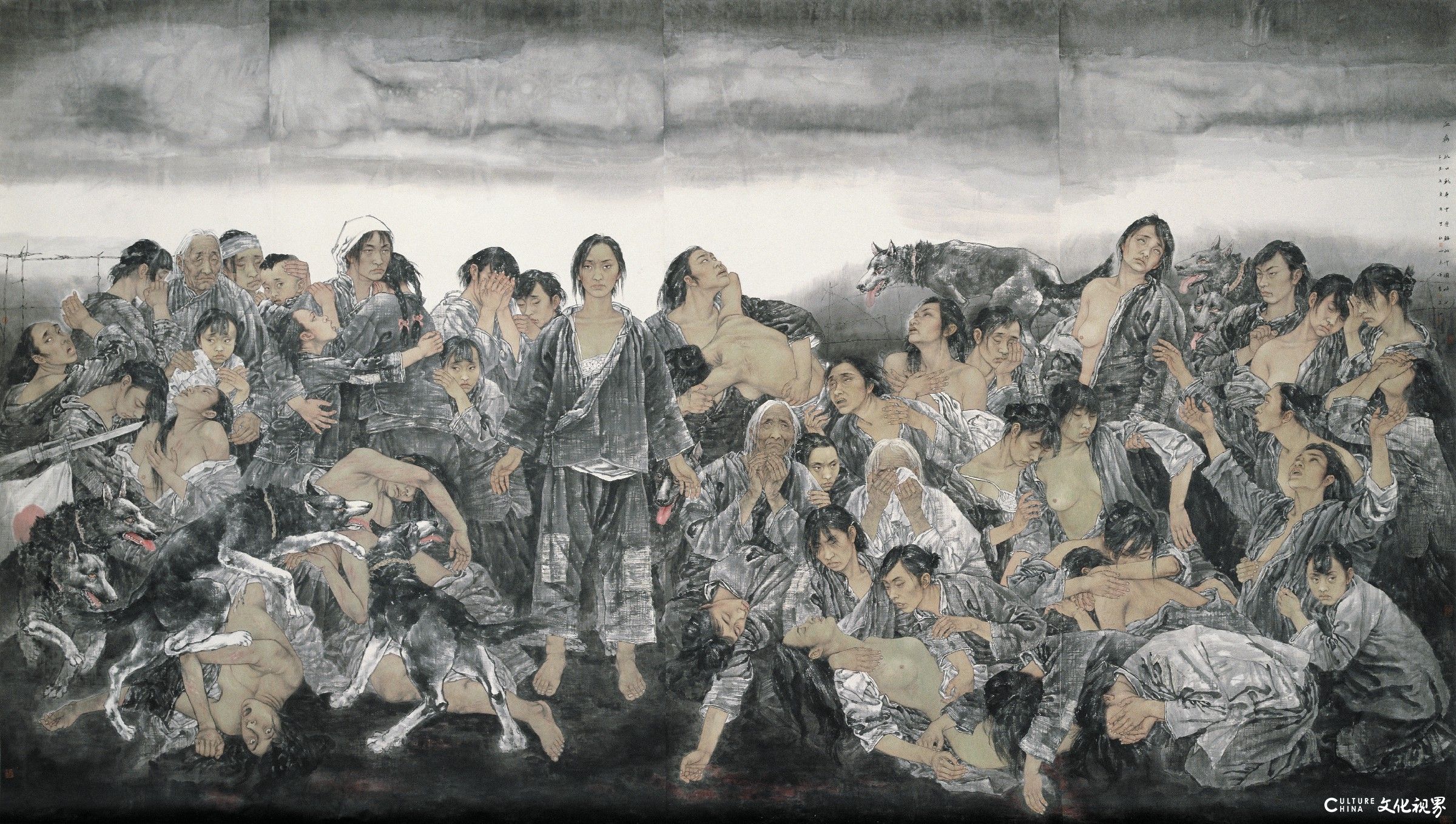 《血痛·抗日战争中受难的中国女性》纸本设色2009年310cm×520cm中国美术馆收藏