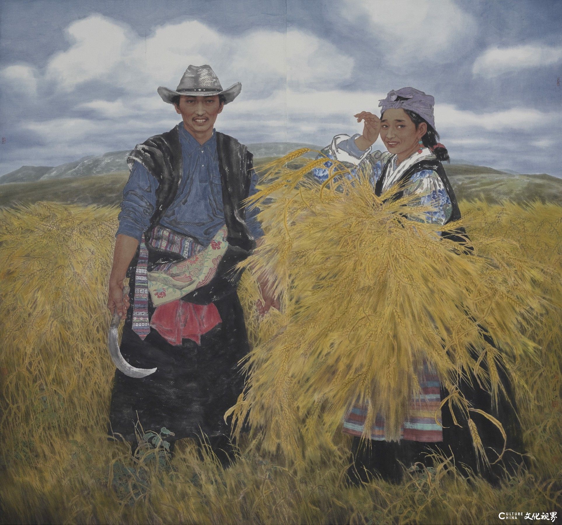 《金色青稞》180cm×190cm2014年纸本设色 应邀参加“中国美术馆弘扬中国精神系列展览:2016贺岁大展——中华民族大团结全国美术作品展”
