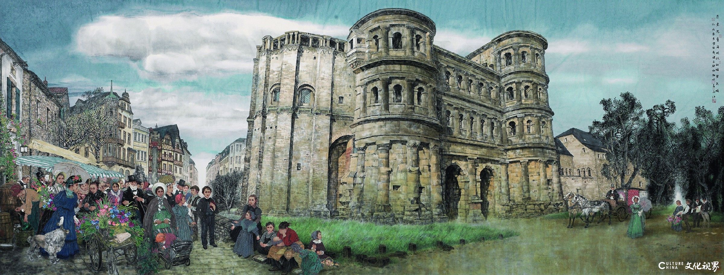 《马克思童年时代的特里尔城》2018年纸本水墨设色190厘米×500厘米中国国家博物馆收藏