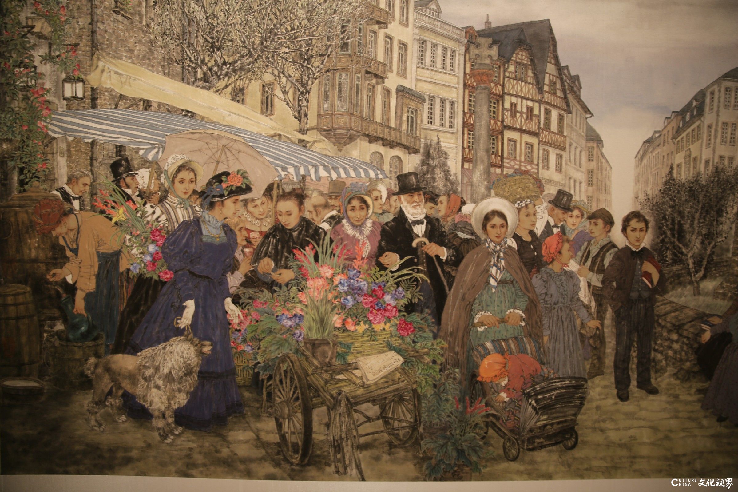 《马克思童年时代的特里尔城》2018年纸本水墨设色190厘米×500厘米中国国家博物馆收藏 局部