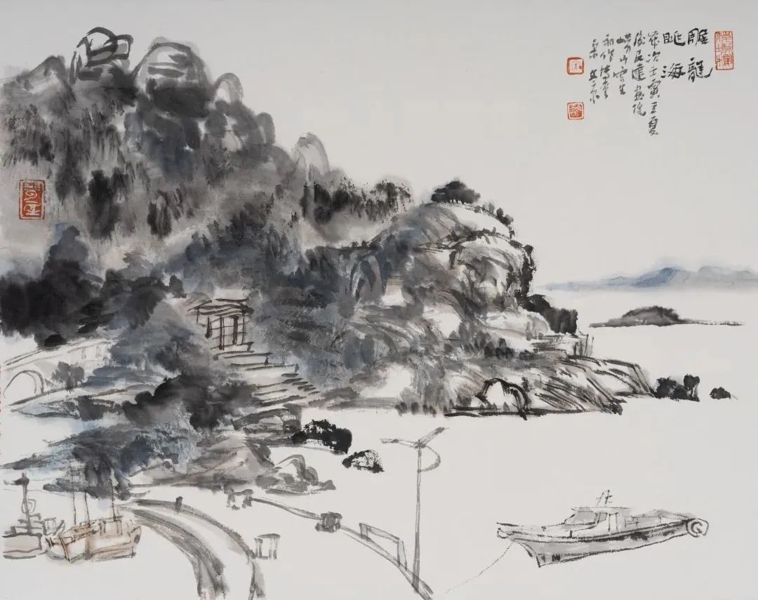 他将以名家的写生经验为参考,用当代的笔墨继承传统绘画精神,展现祖国的山川之美。从青岛的海岬山隅,到神州的名山大川、田间农舍,数千幅写生稿堆叠起他丰厚的视觉记忆库。这些画稿不仅深化了他对山河大地肌理的感知,更滋养了他对各地人文气息的敏锐体察。