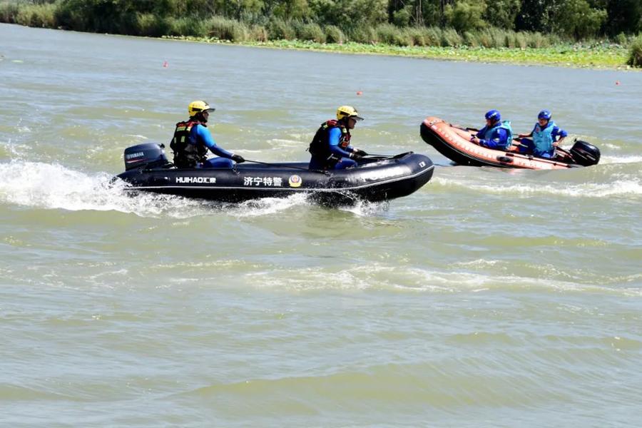 “特警支队防汛救援应急拉动演练队伍集结完毕,请指示!”“开始!”上午10点,随着指挥员一声令下,济宁市公安局特警支队救援力量快速响应,联合消防、蓝天救援队迅速在太白湖集结,正式拉开防汛救援联合演练大幕。
